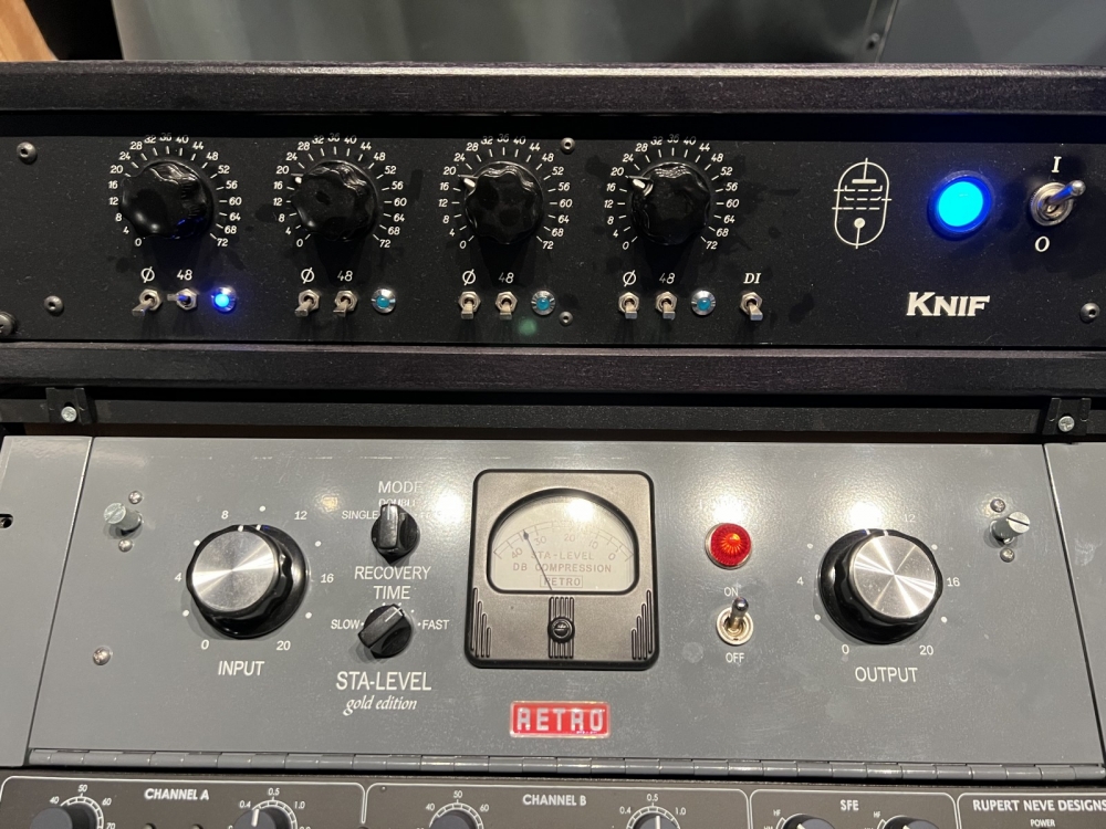 All mics were run through the same KNIF V804 Mic Pre Channel followed by light compression through a Retro STA-LEVEL (settings shown in pic).