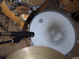 I quickly placed the mic an inch or two from the snare head, at around a 45 degree angle. It was recorded through an Apogee AD16X into an RME Fireface 800 into Samplitude at 24/96 and mixed down to 16/44.1 with POWr-#3 dither.